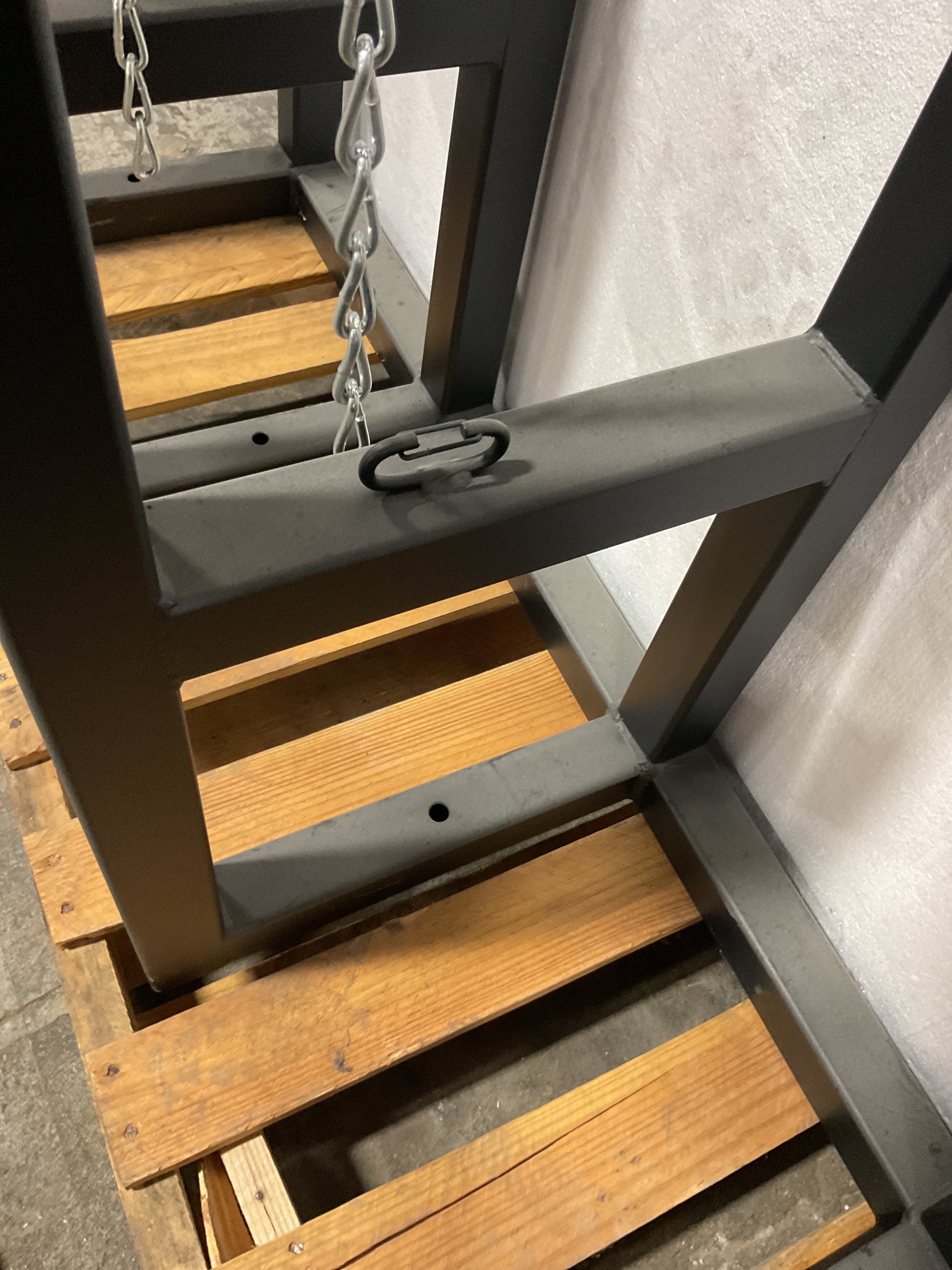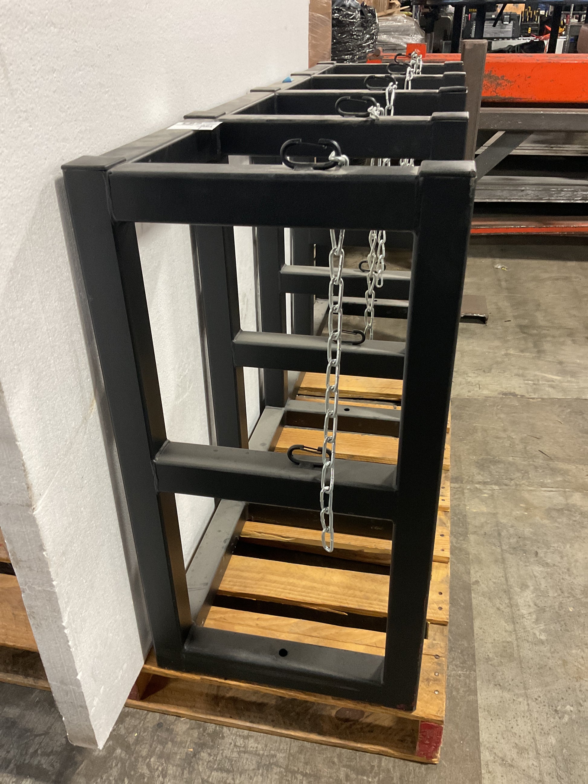 - Features two levels of welded steel chains for each cylinder and clasps to connect the chains to the rack, ensuring a snug fit